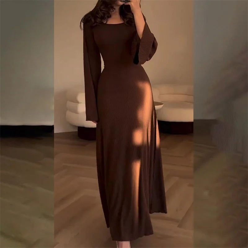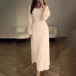 Embrace easy everyday elegance with our Elegant Knit Dress, designed for comfort, movement, and a naturally flattering shape. Made from soft, breathable polyester knit with gentle stretch, this pullover dress delivers effortless comfort for cool autumn days. The A-line silhouette, empire waist, and ankle-length design create a clean, graceful look perfect for daily wear, outings, or relaxed casual moments.